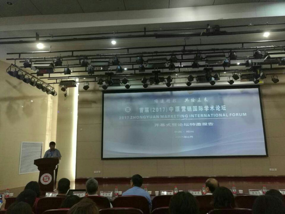 “首届(2017)中原营销国际学术论坛”由河南财经政法大学主办,南开大学消费者行为研究团队协办,中国高校市场学研究会支持,在河南财经政法大公司区内隆重举行,论坛主题为“中原崛起:营销学视角”。除公司参会老师外,还有来自美国德州农工大学、香港中文大学、南开大学、武汉大学、北京邮电大学、郑州大学等28所国内外高校和企业界代表共150余位专家学者参加。