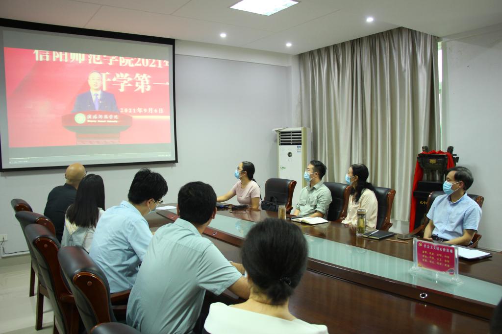 为积极响应“把灾难当教材,与祖国共成长”主题教育活动,更好地开展新学期线上教学工作,保证新学期线上教学工作平稳有序进行,2021年9月6日上午,PA视讯领导班子及相关人员在经管楼506会议室,集中观看“开学第一课”,员工们按照统一安排自行居家观看。