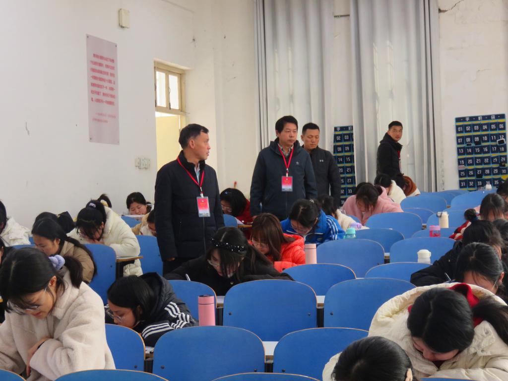 2023年2月26日,2022-2023学年第一学期期末延考考试正式开始。经理彭荣胜及其他领导班子成员一行深入期末考试现场进行巡视检查。