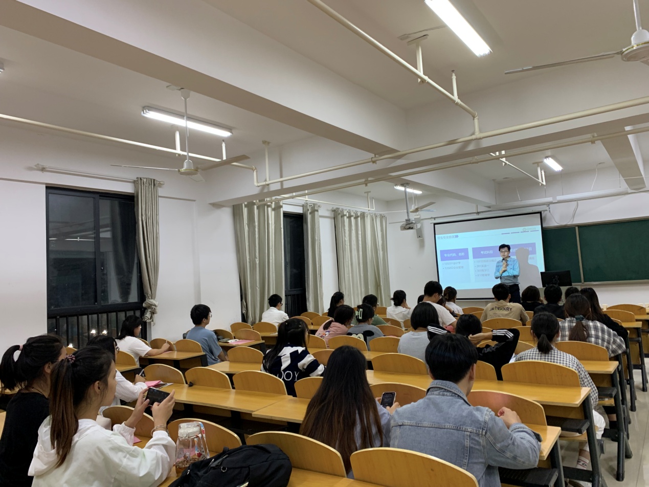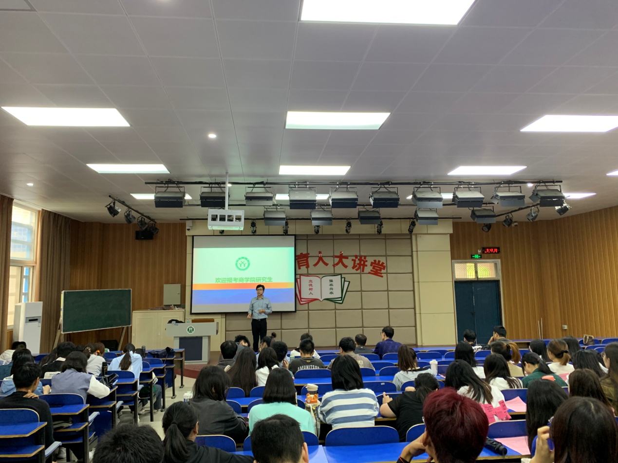 9月21日晚,俞彤晖在信阳学院综合楼608教室进行PA视讯研究生招生宣传。