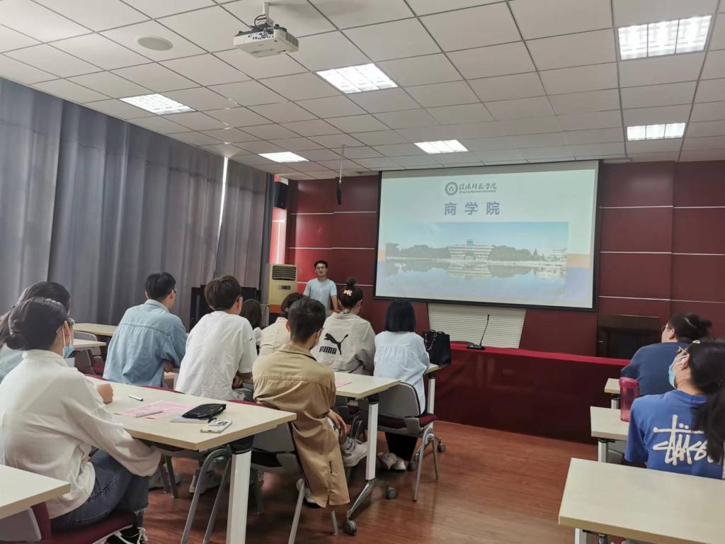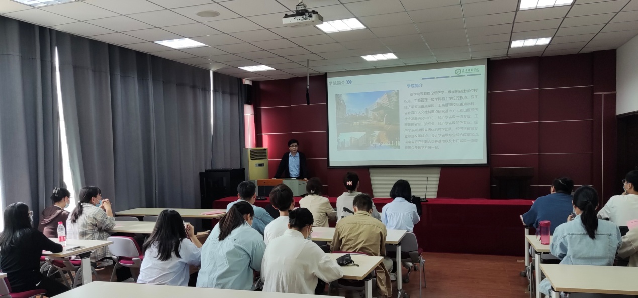 9月24日下午,俞彤晖在信阳师范学院国际教育学院为2019级经济学和会计学专业的同学进行宣讲,2022级研一新生段新宇出席会议。