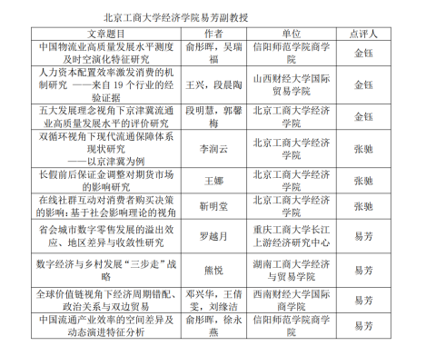 本次论坛以“全国统一大市场与现代流通体系建设”为主题,征文涵盖流通业高质量发展与流通现代化等理论与实践、消费经济、数字流通、智慧物流”等方面的前沿问题。在与领域先锋的交流中,学习了领域新理论,吴瑞福撰写的《中国物流业高质量发展水平测度及时空演化特征研究》和徐永燕撰写的《中国流通产业效率的空间差异及动态演进特征分析》更是得到了东北财经大学流通研究院副经理金钰和北京工商大学经济学院副教授易芳的高度评价。
