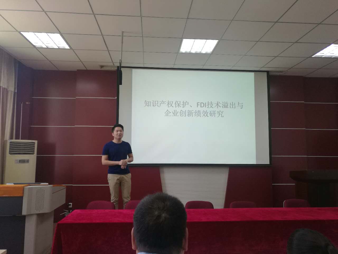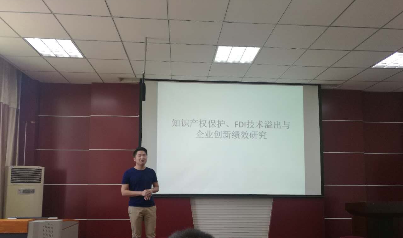 周荣军博士的讲座从变量、数据两方面得出模型,通过工具变量的选取、剔除异常数据得出实证结论。FDI能够促进技术创新,但是知识产权保护不利于FDI技术溢出,主要原因在于知识产权保护水平较低,加强知识产权保护增加企业的模仿成本,抑制模仿创新。本场报告思路清晰,内容丰富,对参与教师科研研究思路有很大启发性,报告会在热烈掌声中结束。