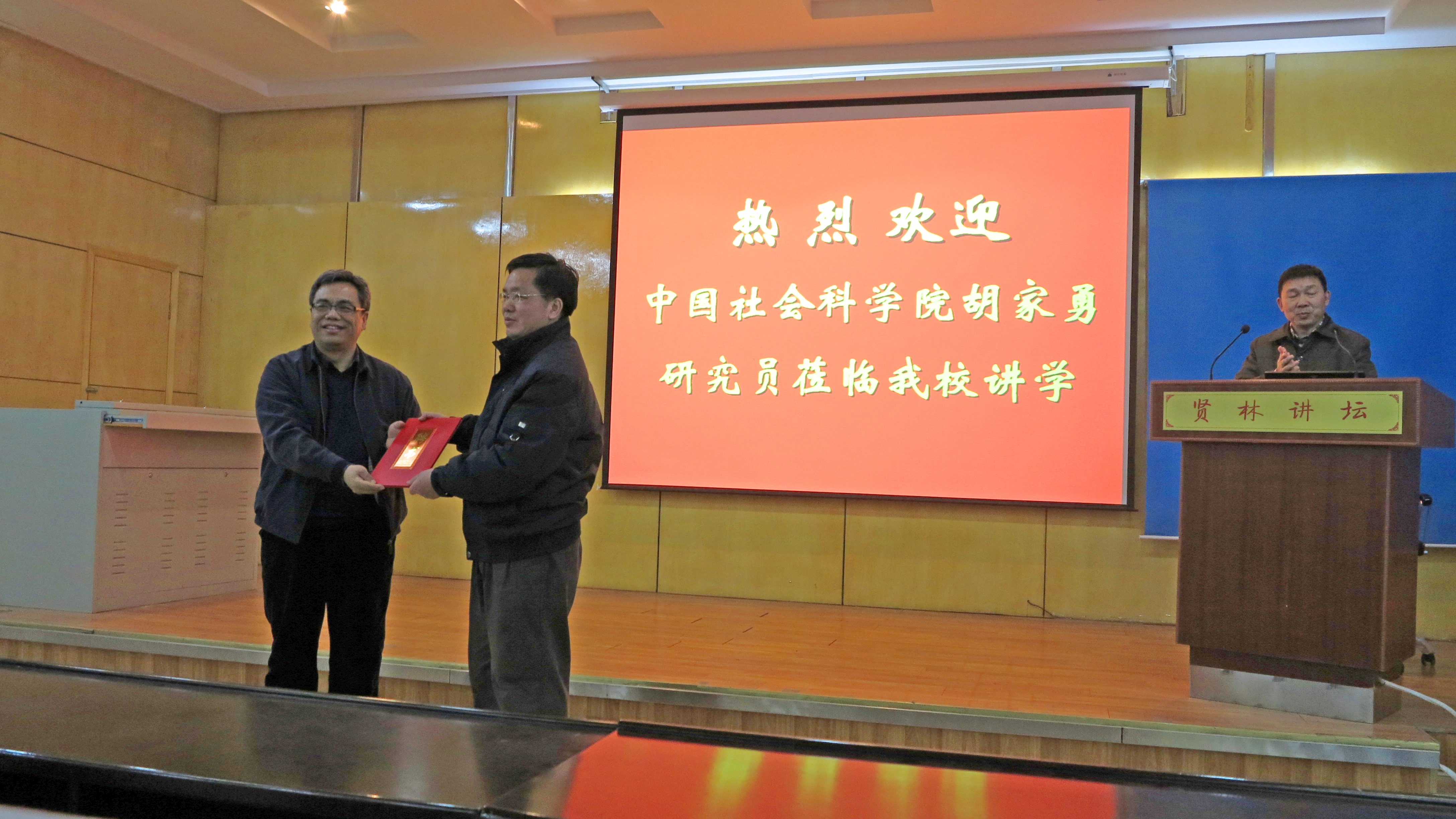 受聘仪式后,胡家勇研究员作了题为“中国新一轮改革”的学术报告。报告中,胡家勇研究员从“市场在资源配置中起决定性作用的理论创新”谈起,介绍了市场在经济发展长河中的重要作用,论述了在中国经济建设中担负的重要使命,详细分析了新一届政府深化改革采取的改革审批制度、购买公共服务、完善金融体制等一系列措施;阐述了上海自贸区的“负面清单”和“非禁即入”的现象。最后,胡家勇研究员认为,深化经济体制改革的重点在于国有经济的改革,应该充分利用混合经济的“公”与“私”、“市场”与“计划”两方面的优势来增强我国经济的活力。