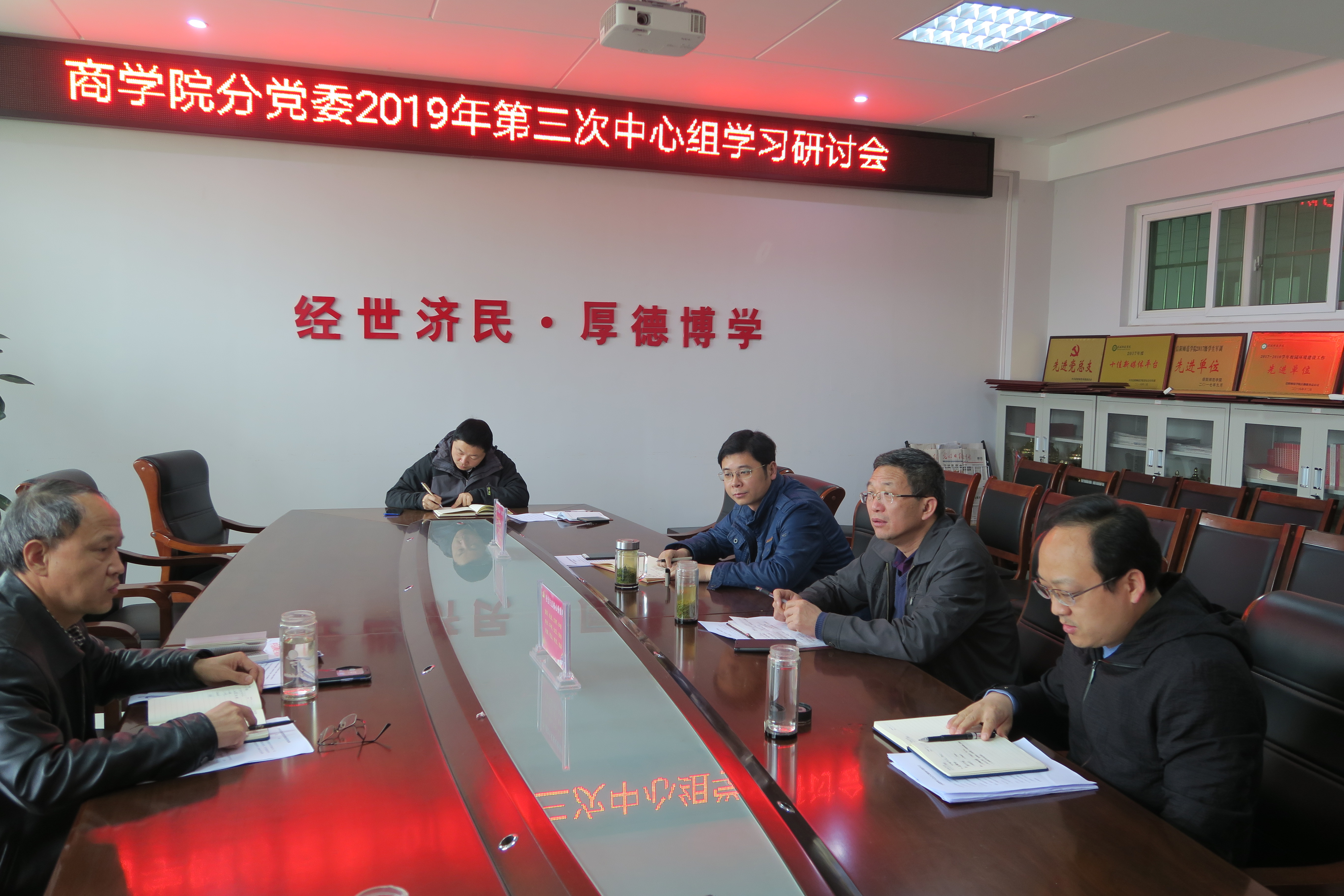 4月29日下午,PA视讯分党委2019年第三次中心组集中学习在经管楼506会议室进行,公司党政领导班子成员参加会议。会议由分党委书记盛正国主持。