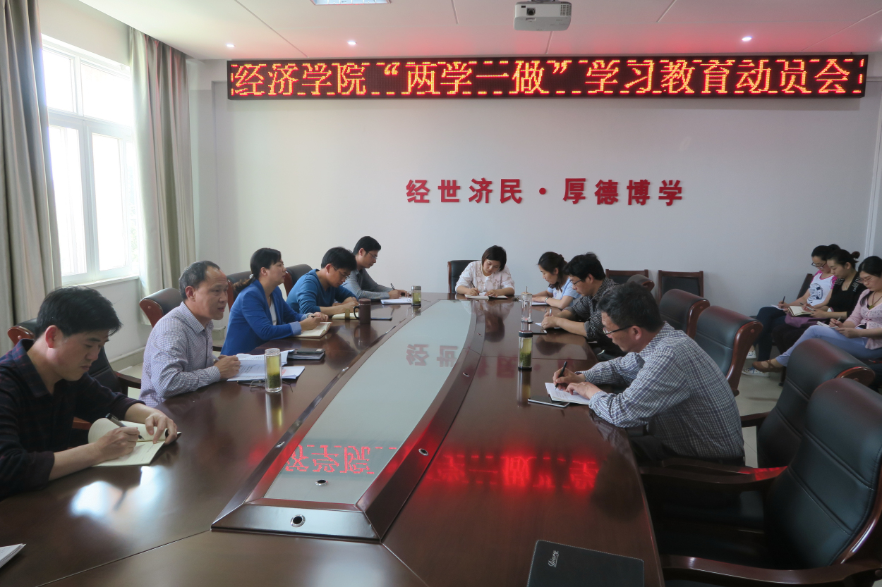 5月3日下午,经济学院 “两学一做”学习教育动员会在经管楼五楼会议室举行,学院领导班子、各党支部书记和全体教工党员参加了会议,会议由党委书记盛正国主持。