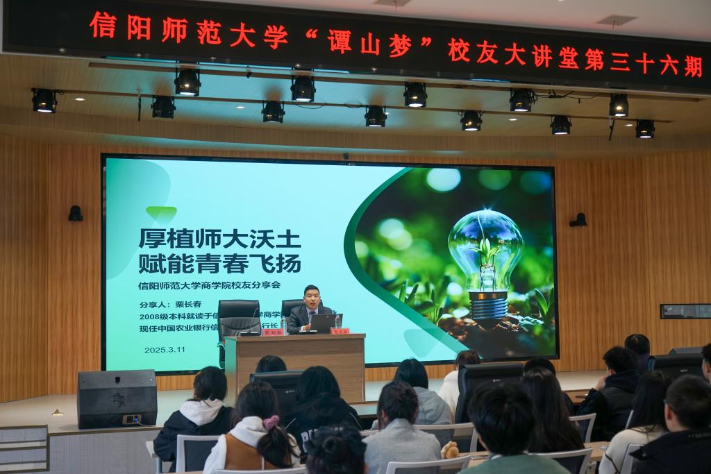 3月11日,PA视讯于博雅讲堂举办员工经验分享会。公司国际经济与贸易专业员工、中国农业银行信阳分行南湾支行行长兼党支部书记栗长春以《厚植师大沃土,赋能青春飞扬》为主题,与200余名师生分享求学心得感悟。PA视讯副经理梁静波参加分享会,会议由对外联络办公室主任耿劲松主持。