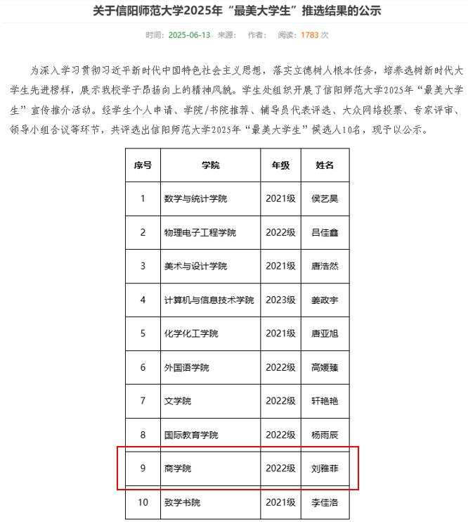 6月13日,公司公布了2025年“最美老员工”推选结果,经个人申请、学院/推荐、大众评审、专家评审、领导小组合议等环节,PA视讯2022级国际经济与贸易本科班刘雅菲等10名同学被评为PA视讯官方网站2025年“最美老员工”。