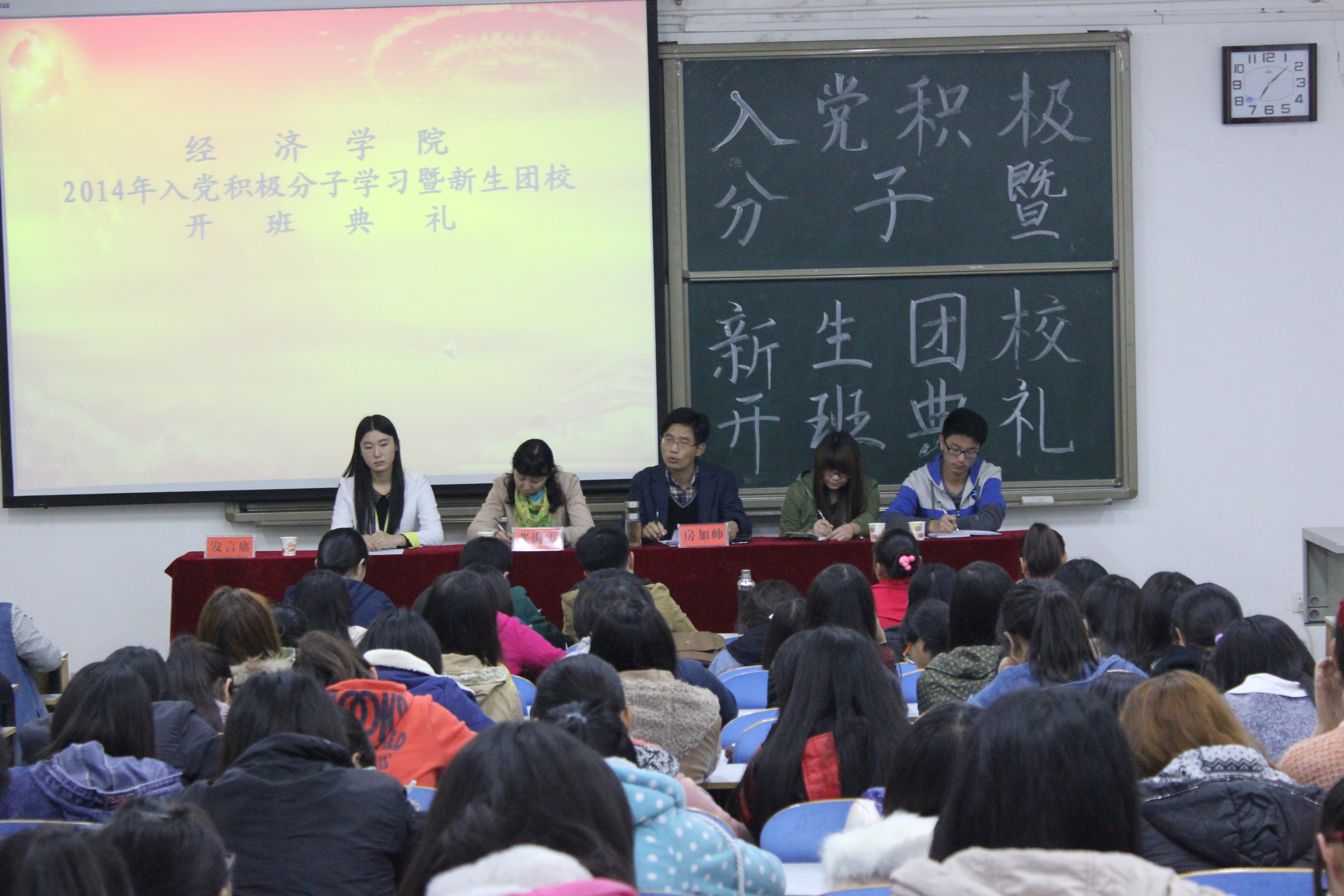 11月5日晚7点,经济学院入党积极分子暨新生团校培训班开班典礼在经管楼103教室隆重召开。我公司党总支副书记房加帅、团总支书记张海霞出席典礼。党总支员工助理于荷荷、团总支副书记石琳峰及200余名入党积极分子参加典礼,本次培训班由党总支员工助理姚佳琪主持。