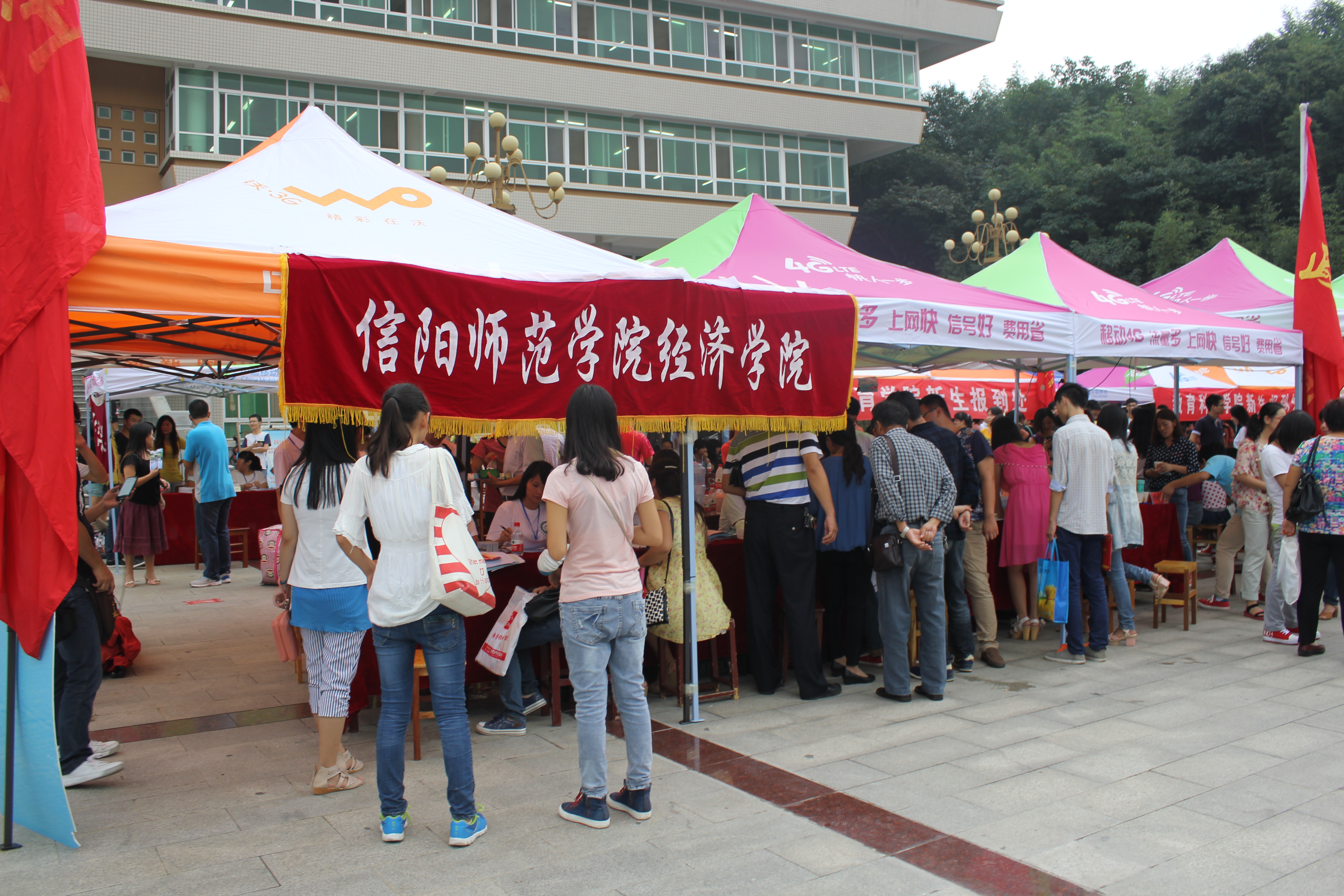 9月9日校园里桂花飘香,洋溢着欢快气氛。就在该日信阳师院迎来了2014级部分新生,经济学院在早已策划好的迎新工作规划下开展了水平高、服务好、效率高的迎新工作。