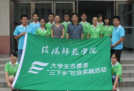 以“凝聚青春力量,实践中国梦想”为主题的信阳师范学院2013年暑期“三下乡”社会实践活动在信阳师范学院各学院如火如荼的进行。经济学院赴信阳市邮政储蓄银行菁英训练营暑期社会实践在7月7日上午正式启动,由经济公司党总支副书记房加帅、团总支书记张海霞带领志愿服务队在经管楼前举行出征仪式。