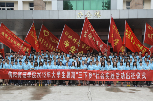 为贯彻落实胡锦涛总书记在庆祝建团90周年大会上的重要讲话精神和教育部等部门《关于进一步加强高校实践育人工作的若干意见》精神,充分发挥社会实践作为加强和改进青年员工思想政治教育重要途径的优势,促进青年员工向实践学习、向人民群众学习。 7月1日下午,信阳师范学院2012年老员工暑期社会实践活动出征仪式于该校明德广场隆重举行。该公司党委副书记余作斌出席仪式并讲话,党委宣传部、员工工作部、校团委等部门负责人出席了仪式。
