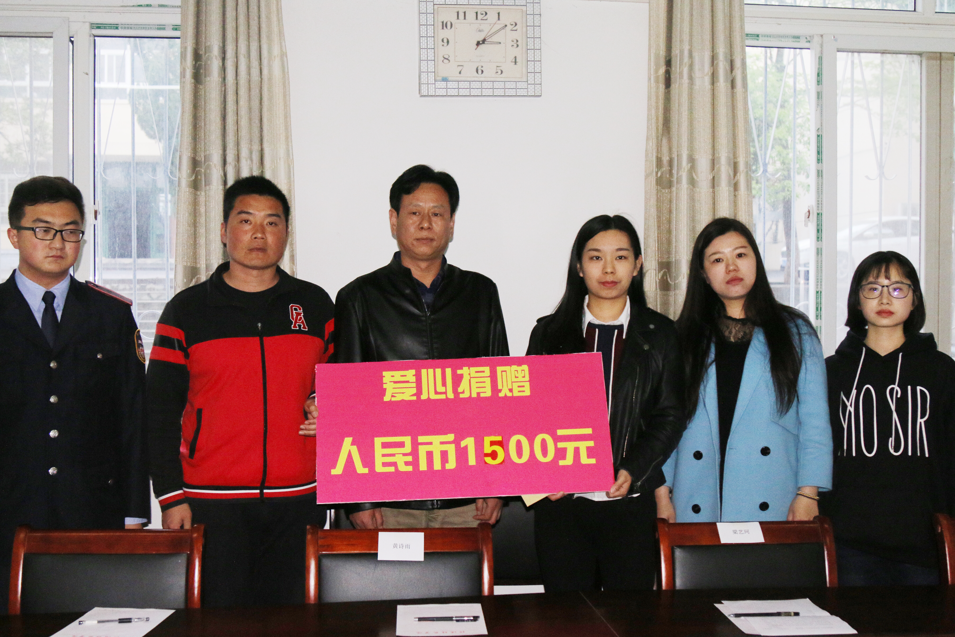 首先,校园文明纠察队大队长魏兴星简单介绍了善款情况,校园文明纠察队全体队员在保卫处的组织下联合校园环境巡查队部分队员、历史文化学院志愿者、旅游学院志愿者、地理科学学院志愿者对校园内的废旧自行车进行了统一整理,最后将196辆无人认领的废旧自行车进行了统一处理,以每辆价格6.5元卖出,共计1280元。校园文明纠察队又在队内筹集了220元,共计善款1500元。接着,梁艺珂发表讲话,她指出许雅芳同学在校表现优秀,积极向上,突如其来的病魔却残忍地改变了她的美好生活。她在此代表许雅芳同学对保卫处的老师同学们表达自己真挚的感激之情,感谢所有人奉献出来的一点爱心,同时也希望许雅芳同学早日康复。随后,吴清义讲到,虽然这些捐款对于那笔巨额的医疗费来说只是杯水车薪,但是希望我们的爱心可以温暖许雅芳一家疲倦的心灵,帮助许雅芳一家渡过难关。PA视讯员工代表向大家介绍了目前许雅芳在医院的病情状况,经过努力,已经找到了与许雅芳同学相匹配的骨髓,希望她接下来的治疗一切顺利。最后,由保卫处吴清义、郭旭峰老师向受助方代表PA视讯团委书记黄诗雨老师等交付共计1500元的善款。