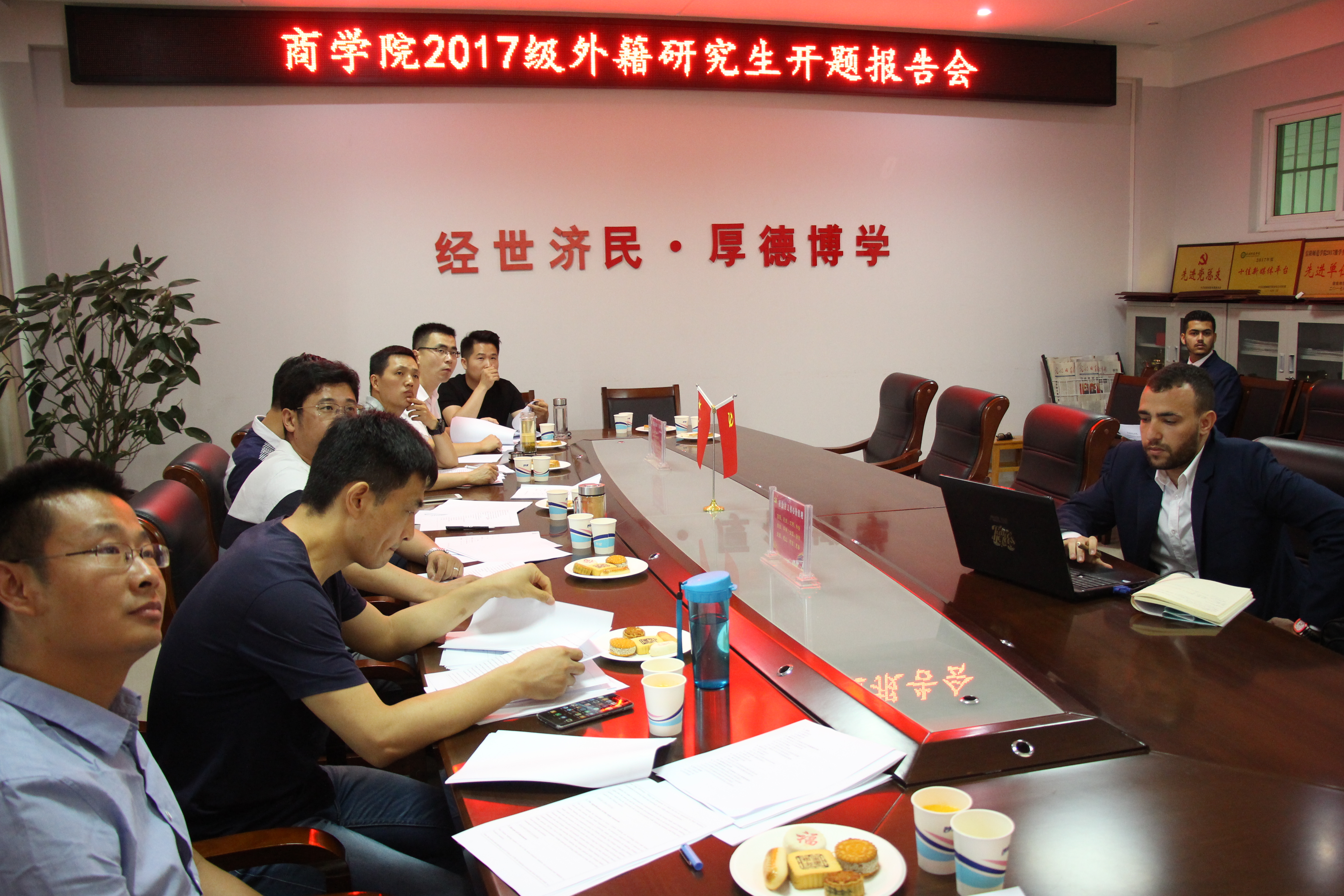 6月12日,PA视讯本年度外籍硕士研究生毕业论文开题报告会在经管楼506会议室顺利举行。开题报告评审专家组由7人组成,研究生秘书及两位海外职工mouhsine和sayf-eddine参加报告会。