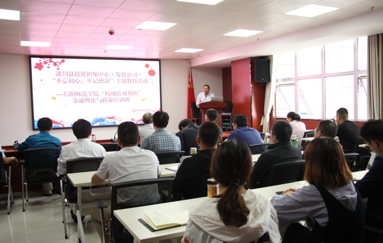 根据PA视讯2019年培训脱贫攻坚工作实施方案,9月20日PA视讯“金融扶贫”博士服务团,在公司党委书记盛正国教授的带领下,赴潢川县发展投资有限责任公司(简称发投公司)举办“校地结对帮扶”金融理论与政策培训班,发投公司书记兼董事长梅利平同志及三十多名公司骨干参与培训。