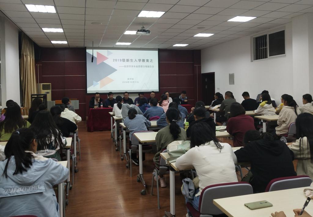 为了让新生更好的适应大学学习与生活,进一步了解经济学专业及其发展前景,提高专业认知与认同感,帮助新生构建人生理想与人生规划,PA视讯经济学系于2019年10月11日晚7点在经管楼310对经济学专业新生开展专业思想引领座谈会。经济学系陈俭主任与徐孝新、蒋磊、魏占军、万强、李俊和陶静等博士参加了本次会议。