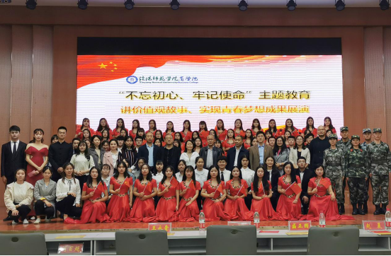 经过为期三个月的认真准备,通过学院“讲价值观故事、实现青春梦想”初赛和复赛的严格遴选,此次展演活动中的选手和作品都非常优秀。当天晚上,观众热情高涨、选手全力以赴,涌现了大量优秀作品,丁家颖和郭怡康朗诵的《富强中国路》,展现了中华民族五千年来的悠久岁月,讴歌了中华民族优秀精神文明基因,以生动的方式诉说了我们实现国家独立和富强的不懈努力;张文静、王肖寒等同学自编自导自演的话剧《赵一曼》讲述了赵一曼坚贞不屈、为国牺牲的感人故事,现场观众为之动容;韩月华老师以《初心如炬--致敬“时代楷模”张富清》为题,将张富清老英雄的故事生动再现,赞颂和弘扬了张富清的爱国精神和奉献精神;退役老员工士兵以《军港之夜》悠扬的旋律引入节目,展现了退伍老员工奉献青春、报效祖国的动人风采。展演活动最后,青年学子以大合唱《我和我的祖国》表白祖国,将现场气氛推向高潮。