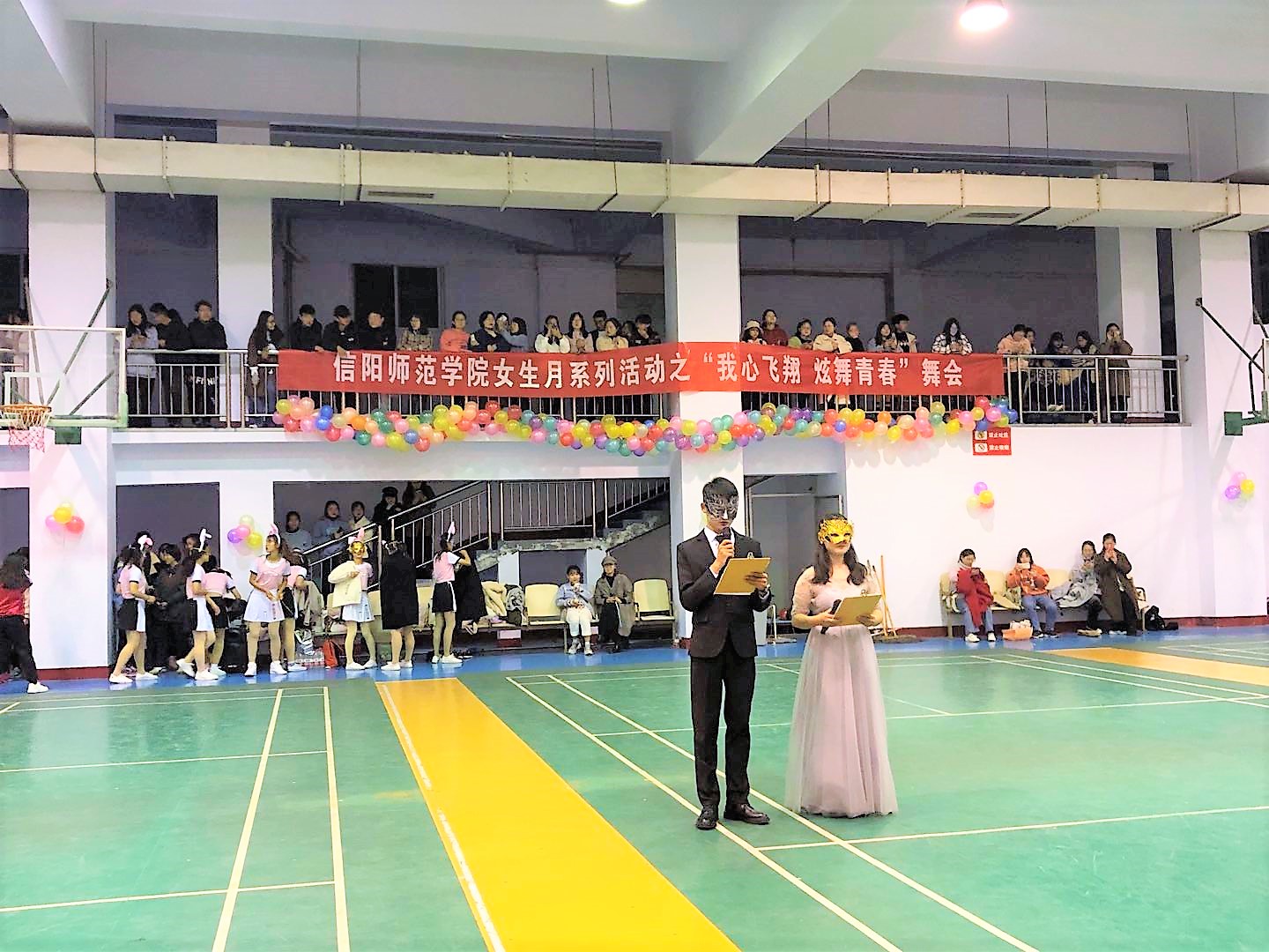 为丰富老员工课外娱乐生活,增强各院系同学之间合作与交流。11月20日晚7点,由校团委主办、PA视讯承办的信阳师范学院女生月系列活动之“我心飞翔 炫舞青春”舞会于体育馆开展。PA视讯团委书记黄诗雨老师、杨紫涵老师出席本次活动。