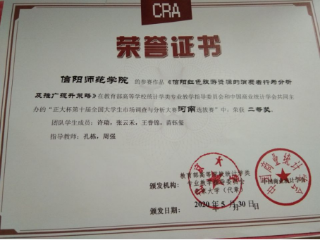 在精彩的成果展示及激烈答辩后,公司员工张艺严同学参与的团队项目《互联网理财市场客户挖掘与维系》(指导教师:乌力雅苏,孙兰银),曾琴、李朋哲同学参与的团队项目《河南省小镇青年影院消费满意度和忠诚度探究及营销策略》(指导教师:何俊杰、刘艳)荣获国家级三等奖;许瑞同学参与的团队项目《信阳红色旅游资源的消费者行为分析及推广提升策略》(指导教师:孔栋、周强)荣获省级二等奖。