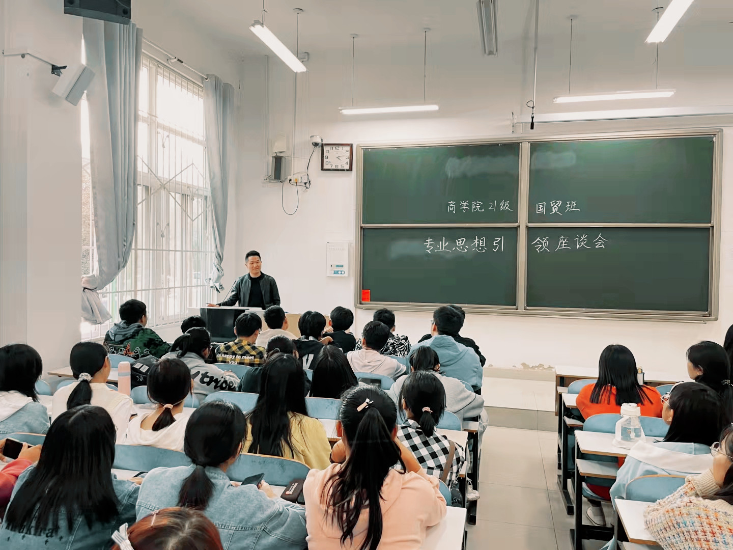 经济学系徐孝新副教授、国际经济与贸易系周荣军副教授、金融学系曹渝等几位老师代表从专业基本概况、专业特色、课程体系、考研情况、技能考证等几方面为新生进行了全面细致的介绍与分析,使员工对今后如何进行专业学习有了更直观、明确的了解。市场营销系余根强副教授、工商管理系方晓波副教授和会计学系郭跃芳老师重点介绍了本专业的团队力量、专业特色、专业优势、就业前景等。还有部分老师以亲身经历与感受分享了专业相关的学习与工作心路历程,拉近了与员工之间的距离。