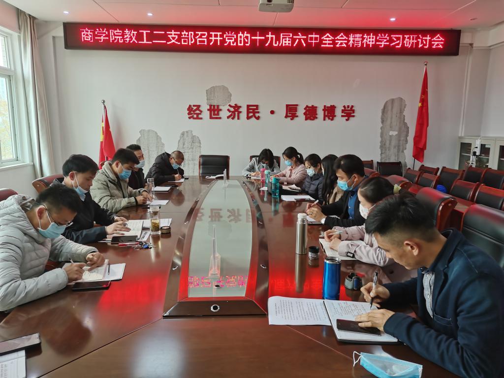 支部研讨学。11月16日,学院三个教工党支部分头进行党的十九届六中全会精神深化学习。与会党员同志结合自身学习心得和专业特色,以不同的视角对党的十九届六中全会精神进行解读和交流研讨。通过深入学习,党员同志纷纷表示,党的十九届六中全会是在我们党百年华诞的重要时刻,在“两个一百年”奋斗目标历史交汇关键节点上召开的一次重要会议。全会通过的《中共中央关于党的百年奋斗重大成就和历史经验的决议》,聚焦总结党的百年奋斗重大成就和历史经验,是一篇光辉的马克思主义纲领性文献。当前,要把学习党的十九届六中全会精神作为最重要的政治任务之一。