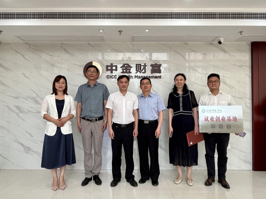 在中金财富信阳营业部,总经理阮争对PA视讯一行的到来表示欢迎,带领参观了信阳营业部的办公场所,感谢师院近年来为公司输送了一批优秀人才。副总经理陈原介绍了公司的基本情况,详细讲解了营业部的人才招聘计划、要求和流程。彭荣胜介绍了PA视讯的专业建设、人才培养和毕业生就业等情况。双方就人才培养、教学科研、员工交流等进行了进一步的交流,在校企合作方面初步达成合作意向,举行了就业创业基地揭牌仪式。